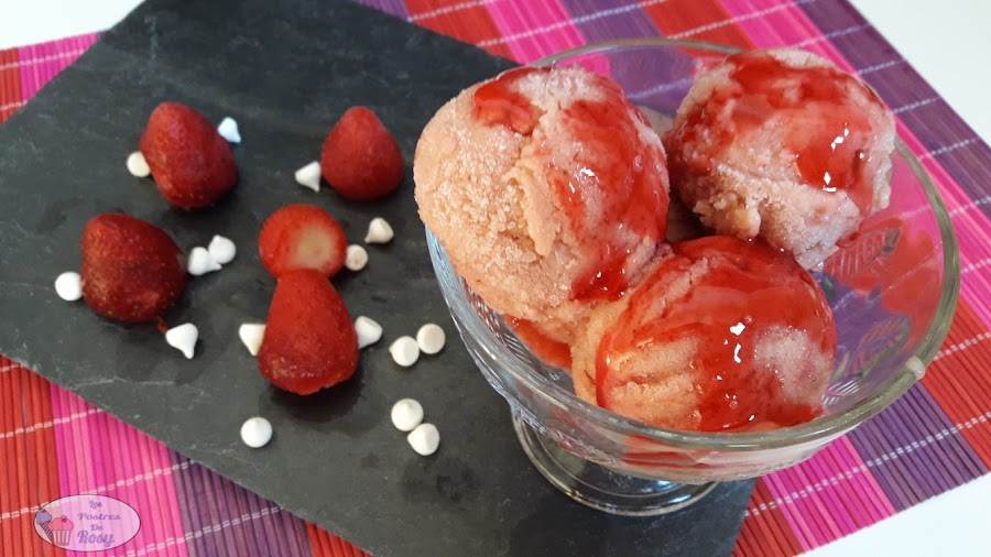 - Y ¡LISTO! ya tenemos nuestro heladito... y ya sabéis, podéis decorarlo al gusto o comerlo tal cuál (yo le puse un poquito de jarabe de fresas hecho en casa sin azúcar).