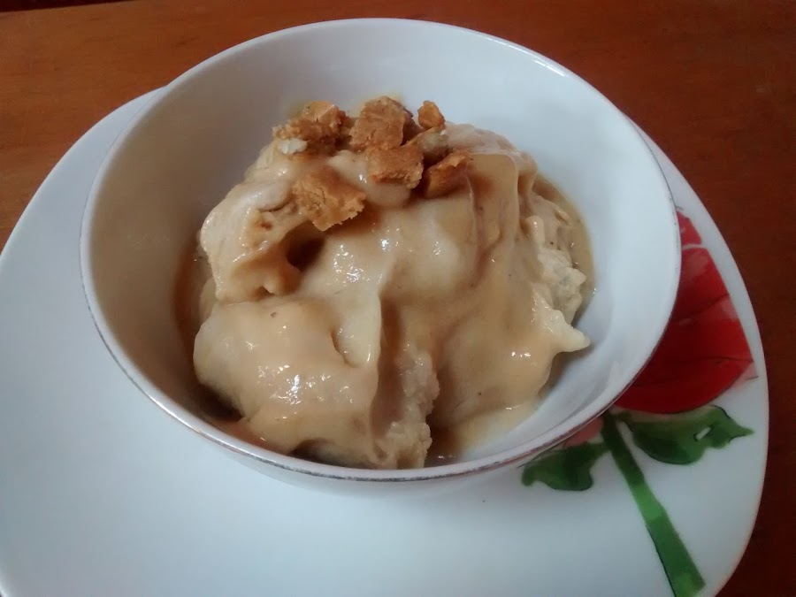 Sirve en pocillos o en uno cono de galleta, decora a gusto (yo puse trozos de dulce de leche en barra) y a disfrutar ! De seguro que quedarás con ganas de más ;)
