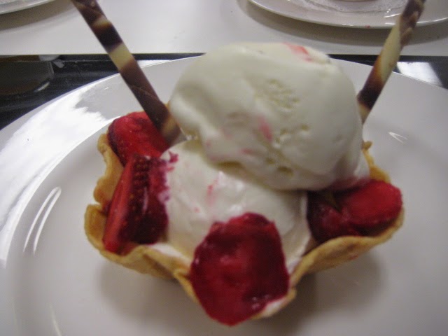 Preparación Calentar la leche y disolver en ella el azúcar. Poner en un bol, añadir el queso y mezclar bien. Dejar que se temple la mezcla, si esta muy caliente y luego agregar la nata (crema de leche). Remover y dejar en la nevera para que madure. Cuando esté bien fría poner en un recipiente de plástico y meter al congelador. Cuando esté a medio helar lo sacamos, lo removemos bien o lo batimos para romper los cristales y volvemos al congelador. Podemos hacer esto otra vez más y dejar hasta que esté helado. Cortar las fresas y ponerlas a macerar con el azúcar y el zumo de limón. A la hora de servir el helado, sacarlo con tiempo del congelador y servir en una tulipa con las fresas bien escurridas.