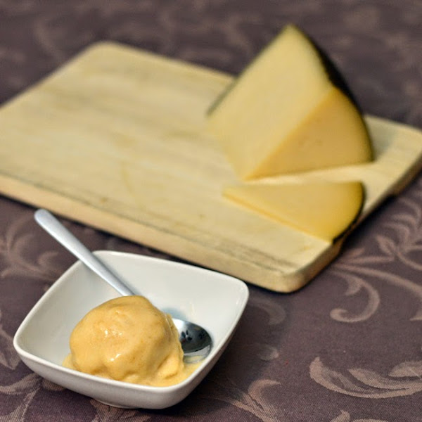 A mi modo de ver, tenía todo lo que necesitaba, pero variando las proporciones: un puré de fruta, queso... ¡y no lleva huevo! Que no es porque vaya a llevar más o menos grasa, que llevando todo el queso que lleva, va bien servido; me parece interesante echar al mundo otro helado más sin huevo ni gluten, genial para los intolerantes que conozco. Y al no estar pasteurizado como los helados comerciales, hasta más seguro.