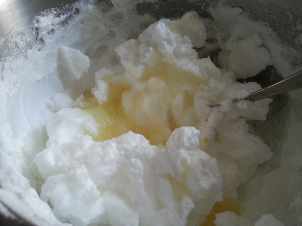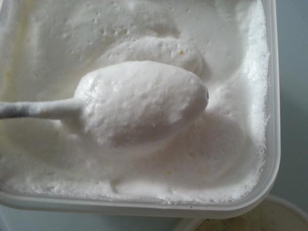 6. - Incorporamos la granizada a las clara poco a poco y mezclamos con cuidado y guardamos en un recipiente y al congelador.