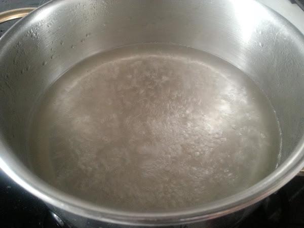 1. - Ponemos en un cazo el agua con el azúcar a calentar y, cuando empiece a hervir, dejamos cocer a fuego medio durante 15 minutos y dejamos enfriar.