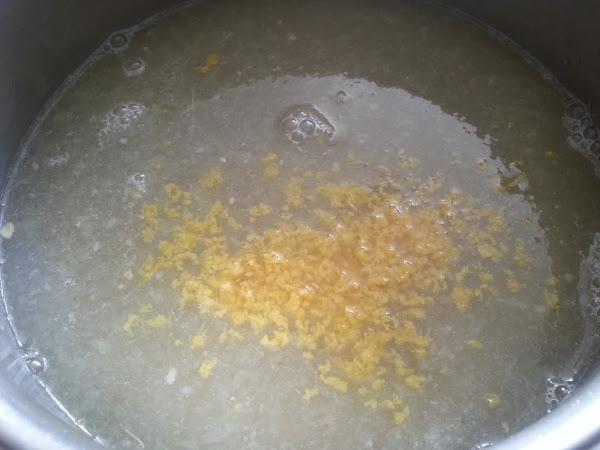 3. - Añadimos el zumo y la ralladura en el almíbar que teníamos enfriando, lo mezclamos bien y lo metemos en el congelador.