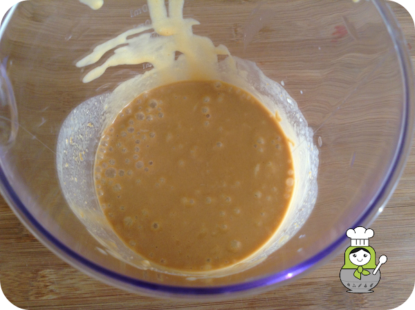 Primero, con ayuda de la batidora, mezclamos la crema de speculoos, la leche y la miel hasta tener una crema homogénea.