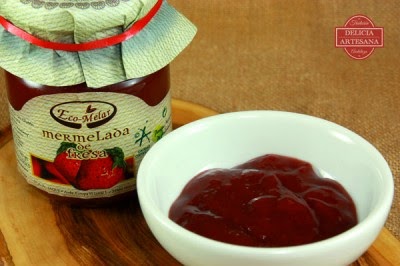 Delicia Artesana. Mermelada Ecológica de Fresa, de Eco-Melar, de Montejaque. ESTA mermelada de fresan se presenta en formato de cristal de 300 grs. de peso neto aproximadamente. Disfruta de esta exquisita Mermelada Ecológica Artesana de Fresa sin Gluten en tus desayunos y meriendas. Está elaborada usando productos de la huerta de primerísima calidad y siguiendo la más ancestral tradición culinaria de las estribaciones de Serranía de Ronda, traspasada de boca en boca por las abuela e hijas de Montejaque. Todos sus ingredientes proceden de cultivos ecológicos y poseen certificación CAAE de producto procedente de agricultura ecológica. Ingredientes: Fresa y azúcar de caña integral. Producto elaborado artesanalmente Sin Gluten.