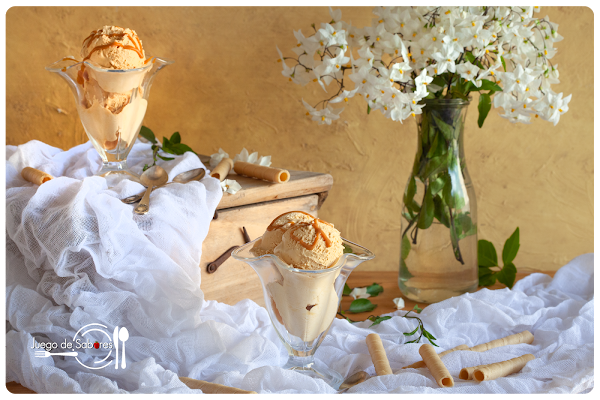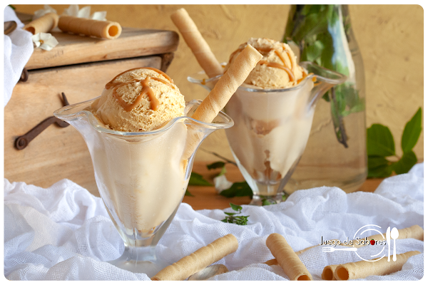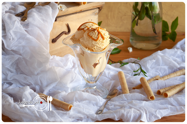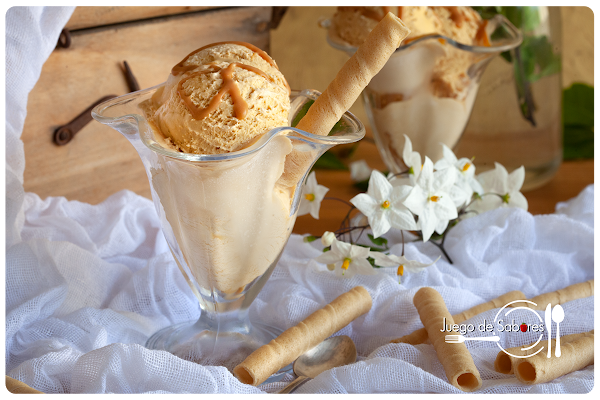 Vaya cosa rica este helado de toffe. Su sabor me recuerda los archiconocidos caramelos de la viuda de Solano que había que comprar siempre que se pasaba por Logroño. Era como un ritual y era uno de los mejores regalos que podías hacer porque esos caramelos gustaban a grandes y pequeños. Los clásicos de la viuda de Solano eran las llamadas pastillas de café con leche cuya invención se remonta a 1830. Los caramelos originales se hacían con leche de burra pero años después ya se optó por la leche de vaca. Este helado de toffe se hace con caramelo y nata (crema de leche) líquida, que por supuesto es de vaca. Es ideal para cualquier época del año porque sus ingredientes no son de temporada.
