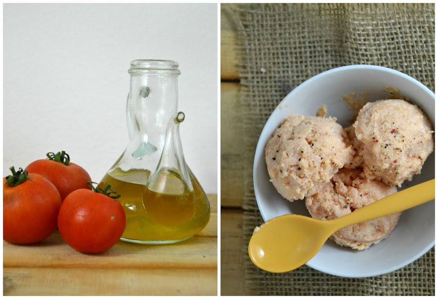 Yo he querido ir un poco más allá y he decidido hacer una receta un poco más innovadora: Un helado de tomate con aceite de oliva. ¿Con que si no podía combinar mejor el tomate? La verdad es que queda un helado muy cremoso y aunque sabor resulta algo extraño en un principio luego se vuelve adictivo