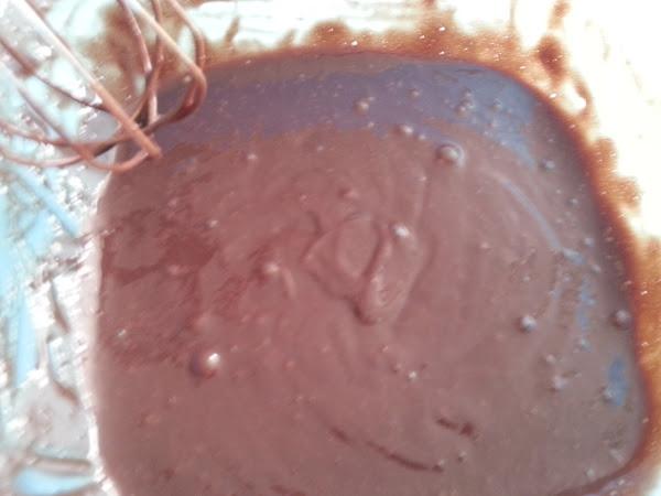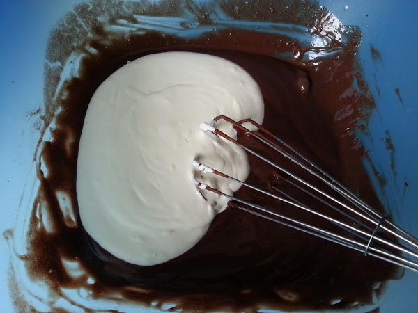 3. - Una vez está bien frío, añadimos la nata (crema de leche) al chocolate.