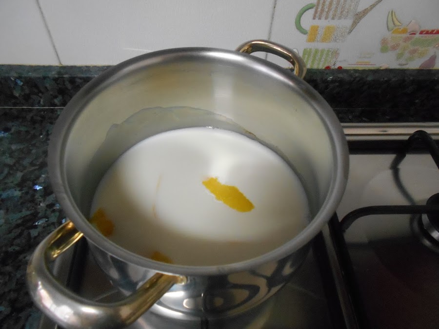 Calentamos la leche con la cascara de limon y la canela.