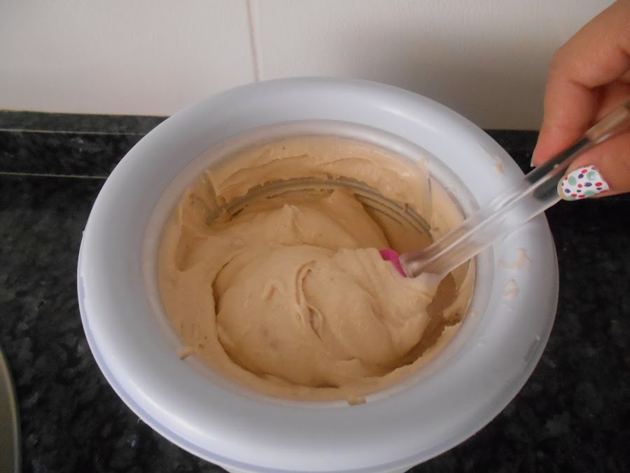 Una vez tengamos bien fria la mezcla en la nevera, la pasamos aun recipiente y la metemos en el congelador.