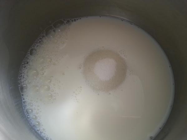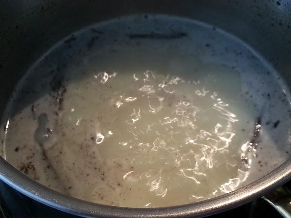 2. - Hacemos una infusión, ponemos el azúcar con la leche a calentar junto con las semillas y las vainas de vainilla.