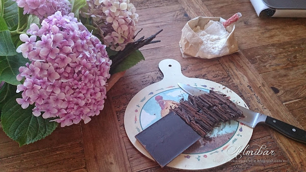 ...trocea el chocolate negro...