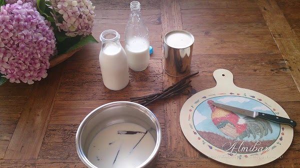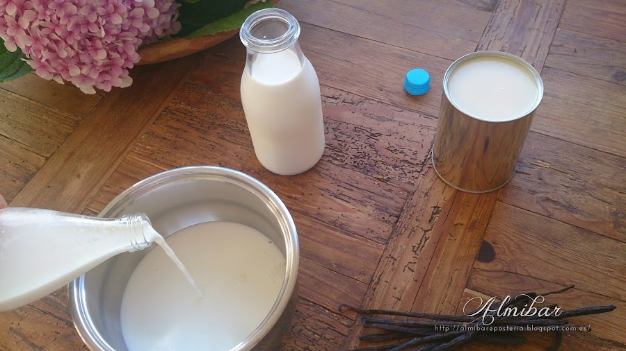 ...añade la leche condensada a la leche con sabor y aroma a vainilla...