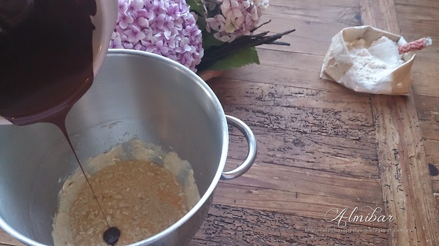 ...añade el chocolate negro fundido y mezcla...