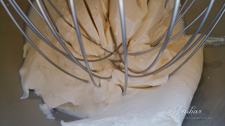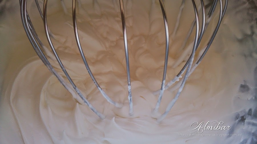 ...monta la nata (crema de leche) fría (3ºC) a velocidad media...