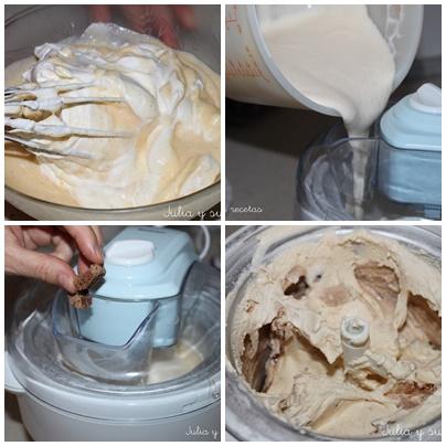 Pasado ese tiempo enchufamos la heladera y le añadimos la mezcla (ya sabéis que el recipiente de la heladera debe estar 24 horas antes en el congelador).