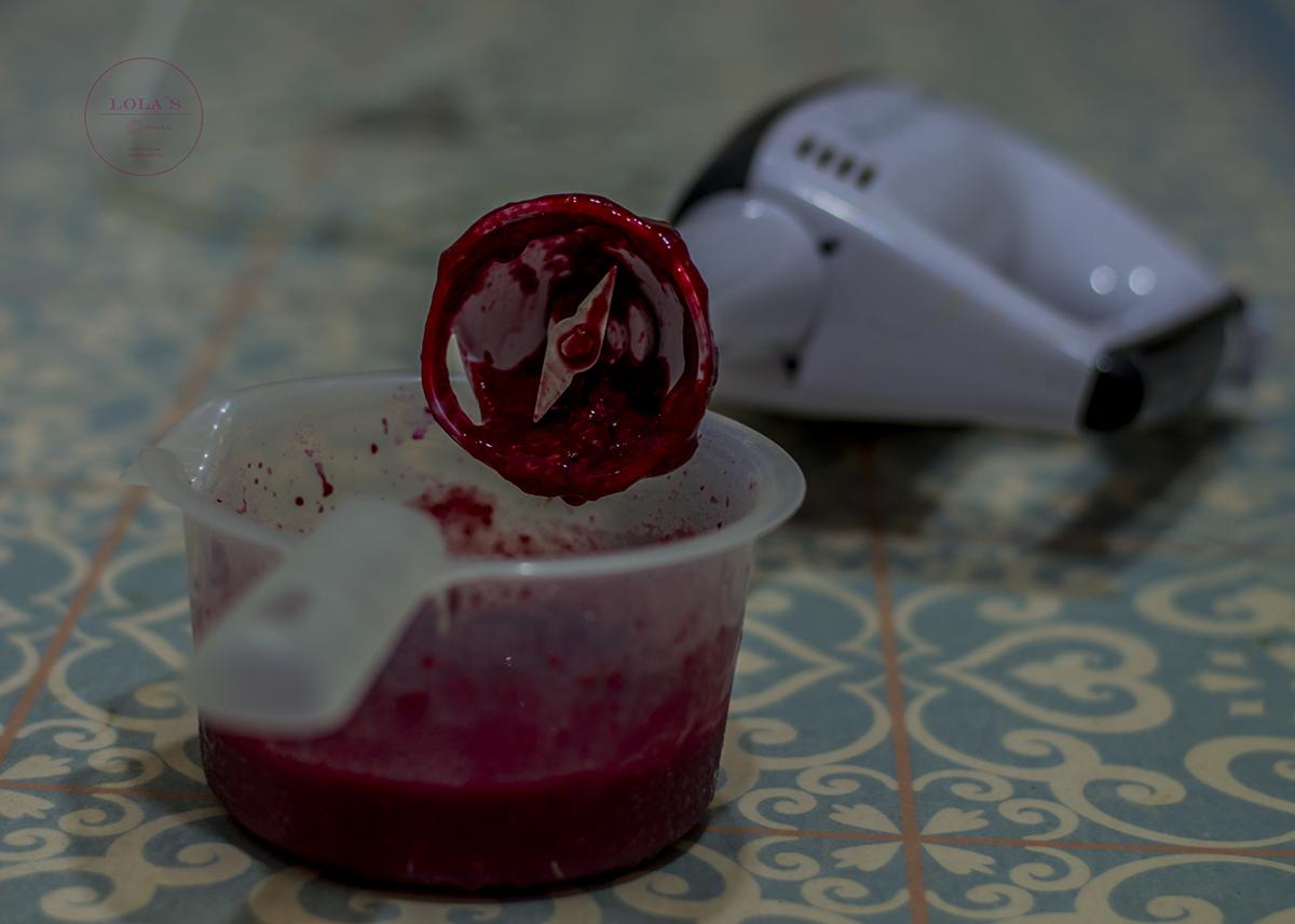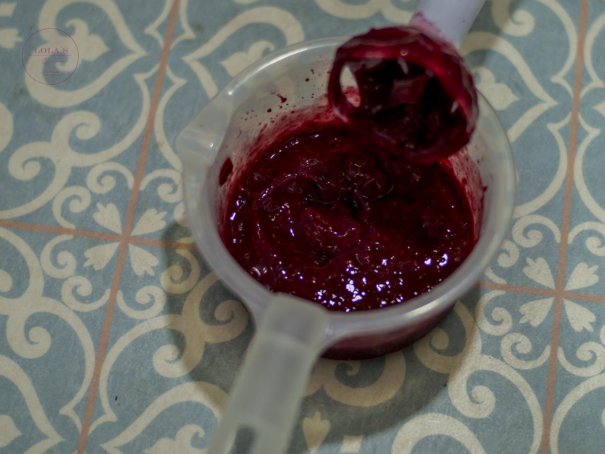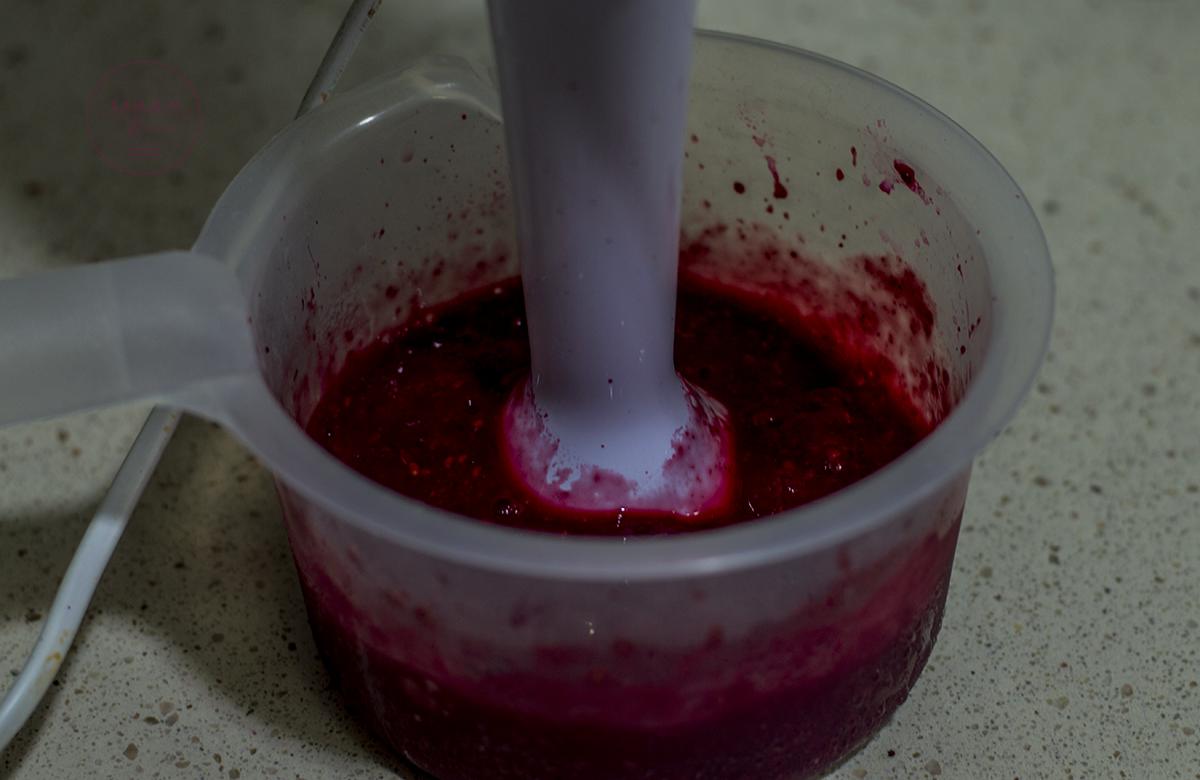 Tritura las frambuesas con la batidora hasta que consigas una crema. Reserva