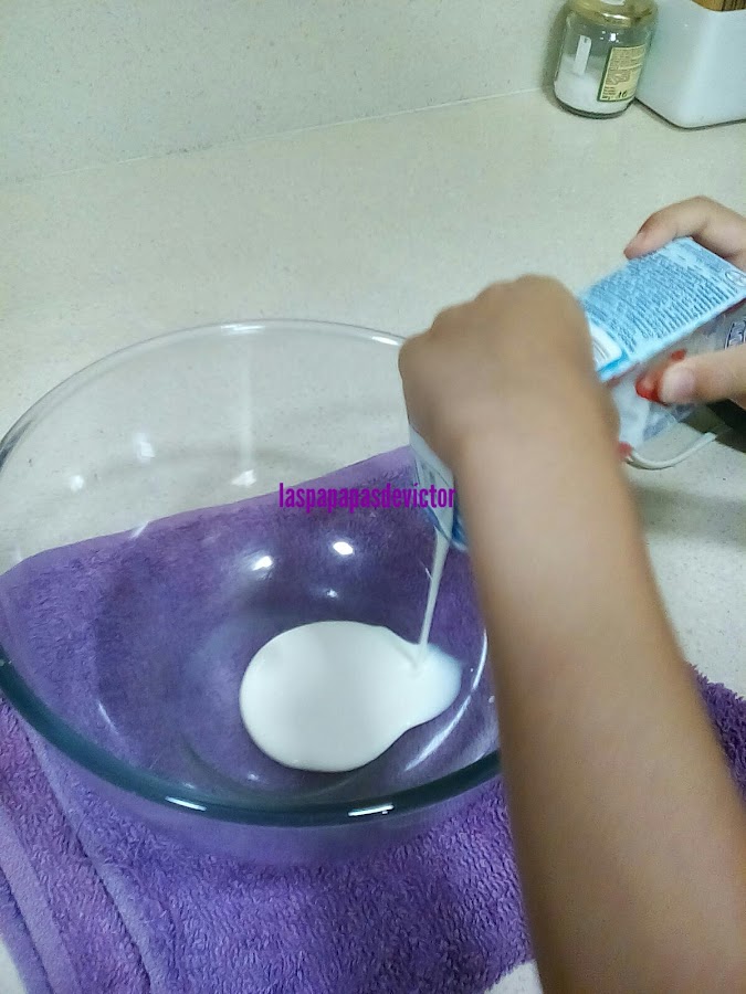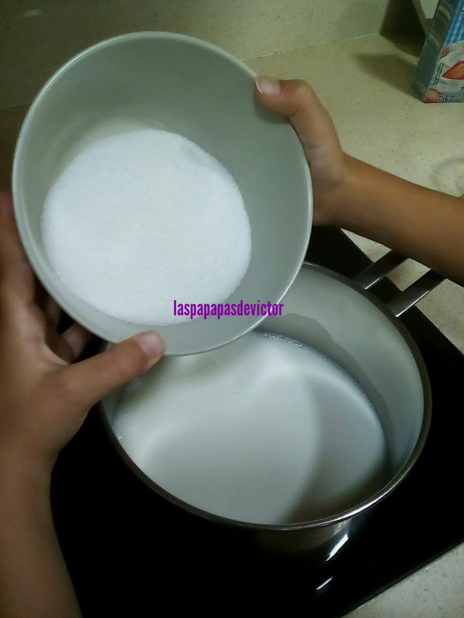 Incorporar a la leche la nata (crema de leche) con movimientos envolventes