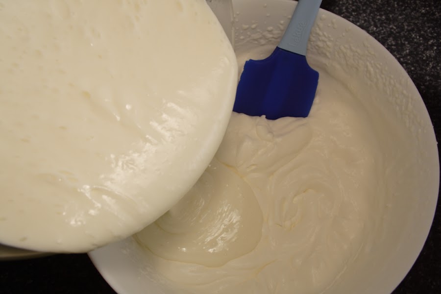 Incorporamos esta mezcla a la nata montada (crema de leche) y mezclamos con movimientos suaves y envolventes.