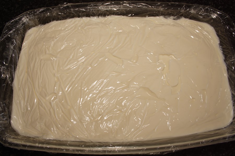Vertemos todo en un molde o fuente de cristal, tapamos con film transparente ( es importante que el plástico esté en contacto con la crema) y lo introducimos el el congelador durante toda la noche.