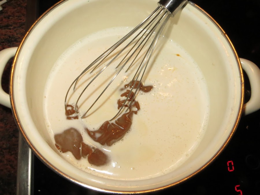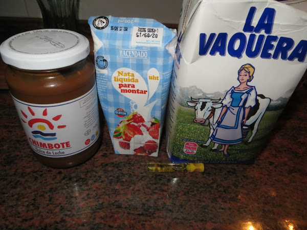 Lo primero que hacemos es poner en un cazo la leche, la esencia de vainilla y el dulce de leche y darle vueltas hasta que el dulce de leche se haya disuelto. Mientras tanto en otro bol montamos la nata (crema de leche). Para que la nata (crema de leche) monte perfectamente recordar que tiene que estar bien fría, al igual que los recipientes que vayamos a utilizar yo los meto un poco antes en el congelador. Cuando ya esté disuelto el dulce de leche vamos echando la nata (crema de leche) poco a poco con movimientos envolventes.
