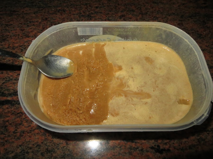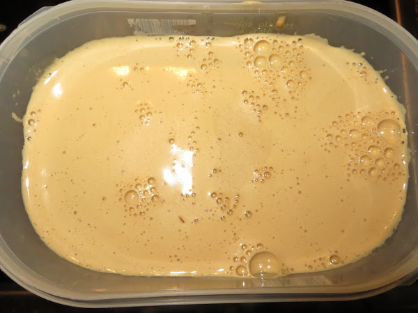 Una vez que tenemos todo mezclado lo echamos en el recipiente que vayamos utilizar para congelarlo. Para que el helado no cristalice durante la primera hora tenéis que remover el helado cada 15 minutos, durante las dos horas siguientes cada media hora y luego dejarlo cuatro horas mínimo antes de consumir.
