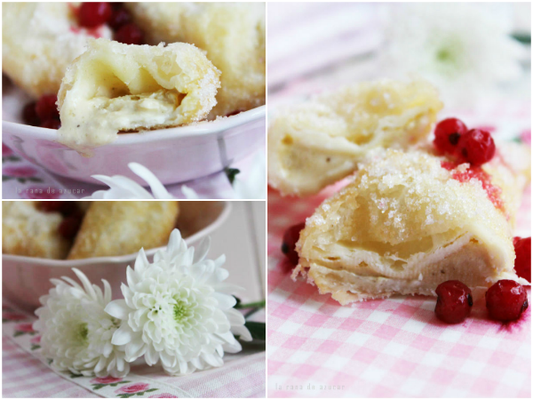 Hace unos dias Sandra desde su página de face nos animaba a prepararlo y yo ni corta ni perezosa le dije que lo haría y aquí estoy con esta tentación que no podrás evitar comerte solo uno, ni dos, ni...bueno para ya que luego no quiero que me echéis nada en cara jajjajaja y es que están demasiados ricos, una deliciosa combinación del crujiente del hojaldre con el frío del helado.