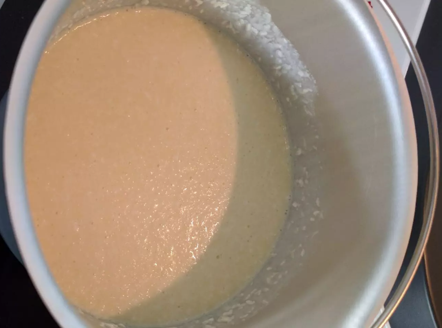 Añadimos el resto de ingredientes salvo el coco rallado. Batimos a velocidad 6, 3 minutos