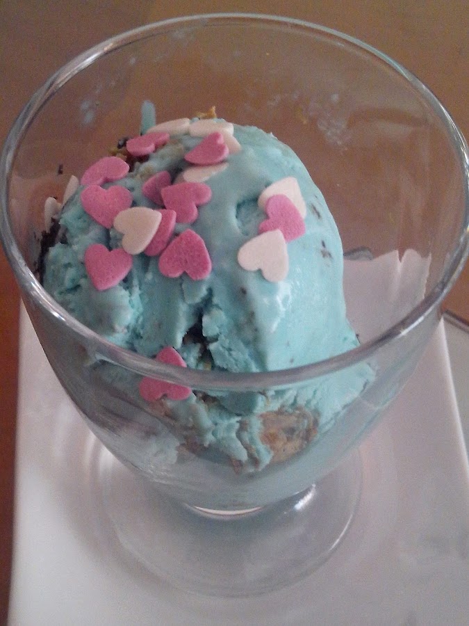 Yo le puse poco colorante, menos del que pone la receta pero eso va a gusto, si os gusta mas azulon solo teneis que añadir mas colorante.