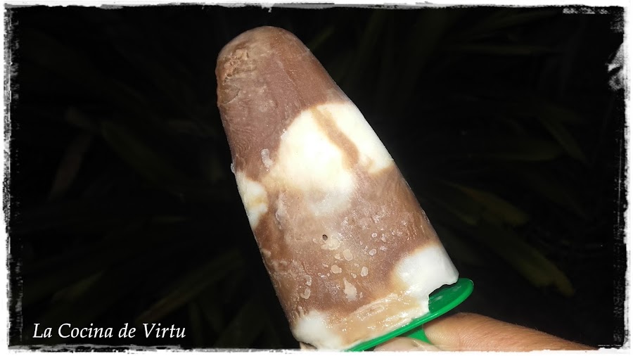 En moldes de helados, si no tienes puedes utilizar envases de petisuis por ejemplo, no los tires reserva para hacer helados, o si no los tienes preparados vasos pequeños. Si son de plástico mejor, lo digo por los peques.