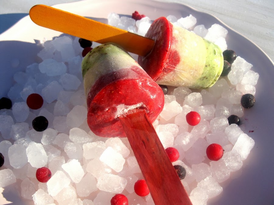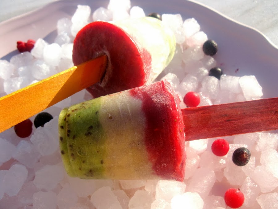 Batir en tres fases en esta ocasión yo puse primero el kiwi segundo el plátano y por ultimo las frambuesa.ponemos el palito y al congelador ummmmmm muí bueno para los niños el próximo sera con alcohol..