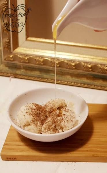 Podéis añadir azúcar si queréis pero yo lo que hago es dejar que los plátanos estén muy maduros para que con el azúcar propio de la fruta no necesitemos añadir más, así tenemos un helado sano sano. Aunque si sois muy golosos como yo siempre podéis servirlo acompañado con un poco de miel que le da un toque muy bueno, y ahí mi pequeño pecado, como me pierde el dulce, jejeje.