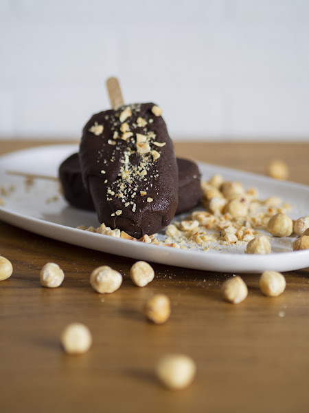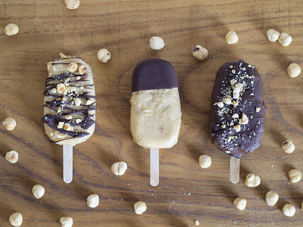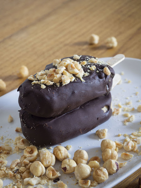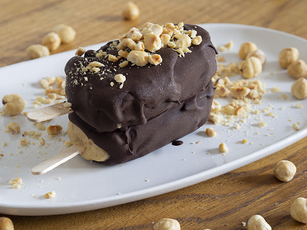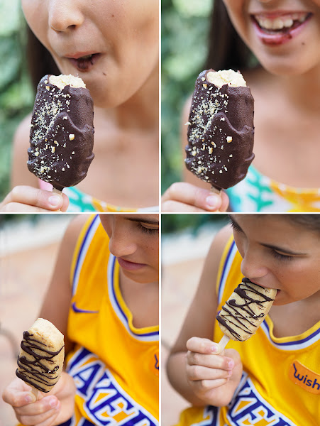 Opcional para los amantes del chocolate: Podéis, bañar o decorar los helados con chocolate. Para eso, sólo tenéis que derretirlo al baño maría y sumergir los helados en él. ¡El chocolate se solidifica al momento!