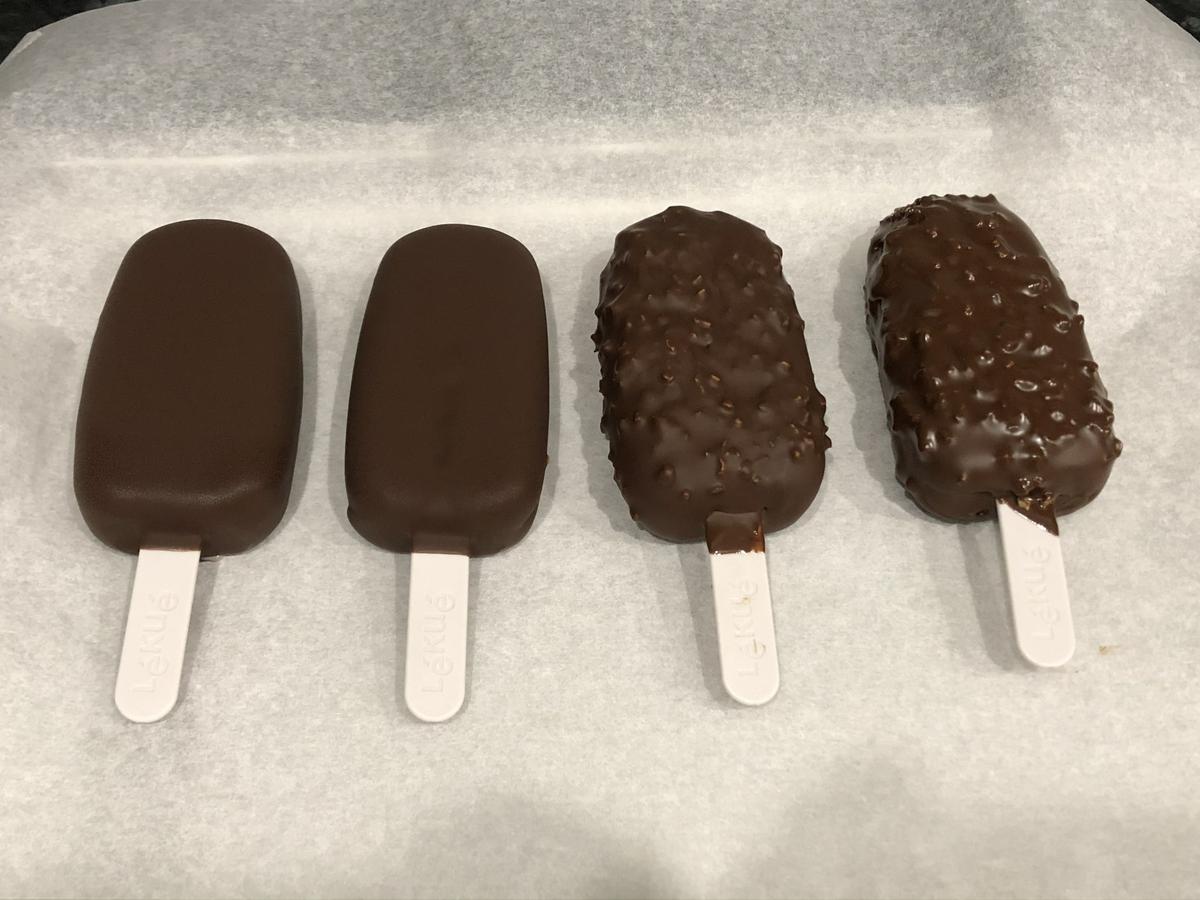 6. Guardamos en el congelador un rato por si la crema se ha ablandado mientras los bañábamos. Podremos consumir o envolverlos en film de manera individual si no los vamos a tomar en ese momento.