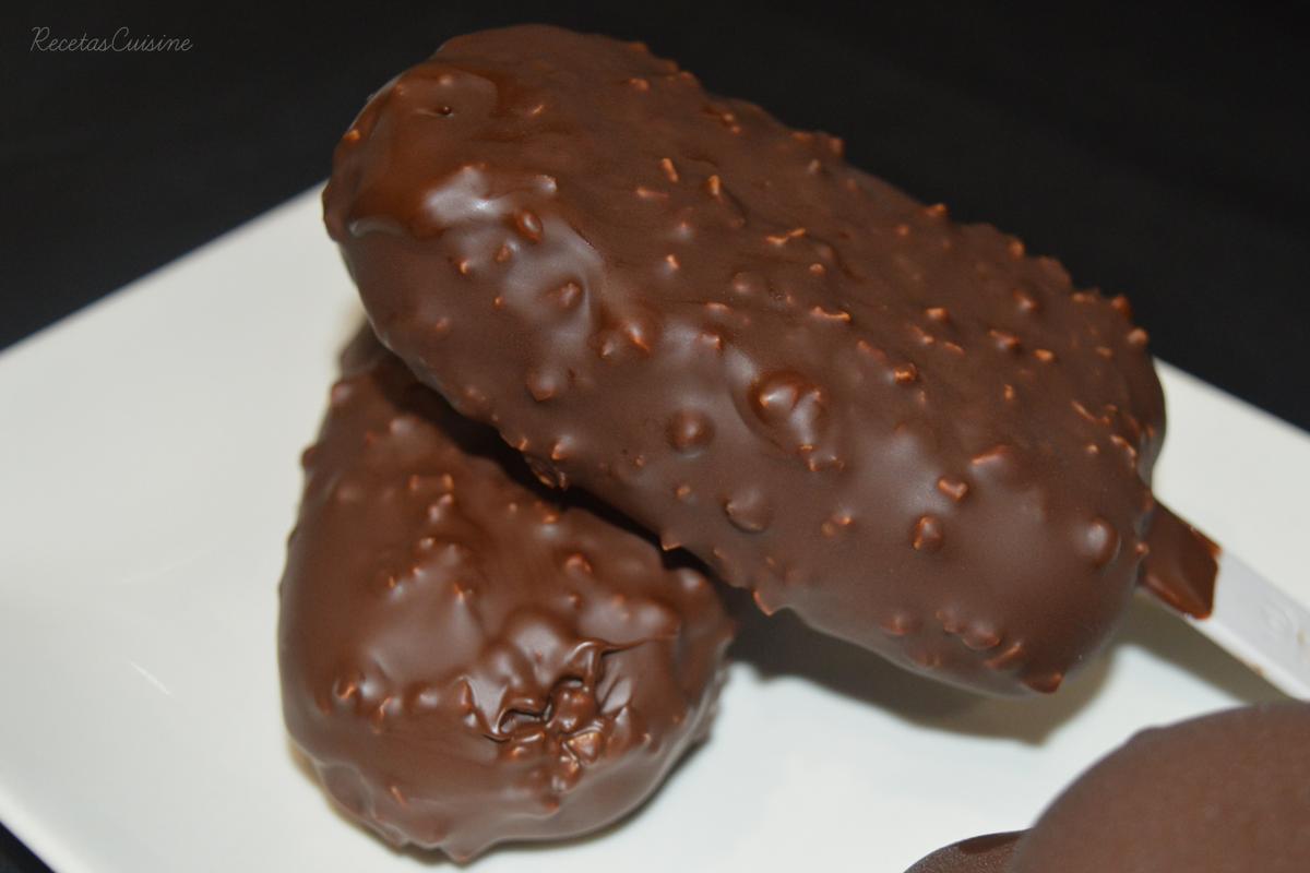 Una vez que tenemos nuestros helados bien congelados, preparamos el baño de chocolate.