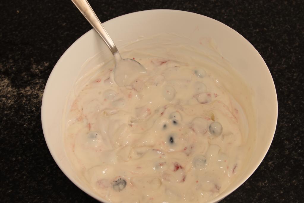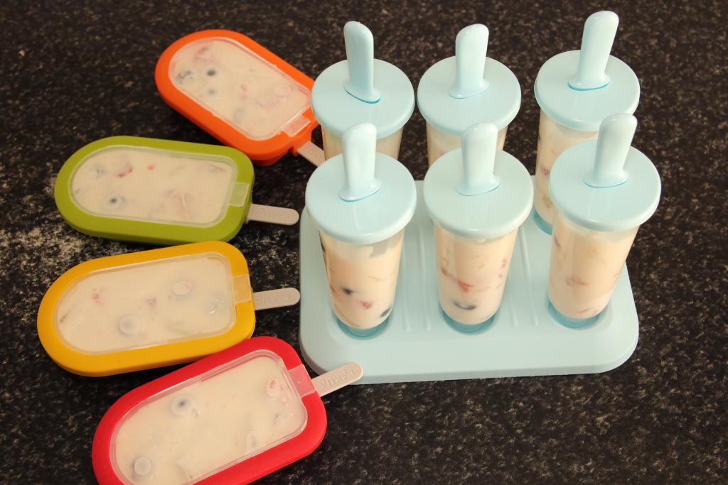 Consejo: Es conveniente hacerlos la víspera. En cuanto a la fruta podemos variar y poner nuestra favorita, melocotón, kiwi, albaricoque… La opción de la fruta congelada que venden en las grandes superficies es ideal, las bolsas de frutos rojos, por ejemplo. No he puesto azúcar, ésto a vuestro gusto.
