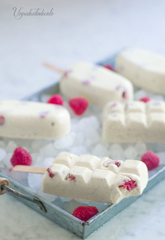 Yo sólo le he añadido frambuesas, más vainas de vainilla y los he congelado en estos moldes ideales donde los haya de Silikomart que puedes comprar aquí