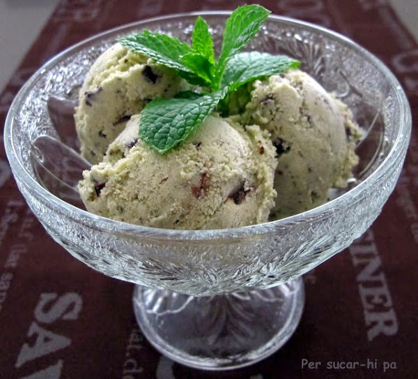Del blog "Per sucar Hi-Pa", nos llega este buen helado de chocolate y menta, que es una combinación que me encanta, como los famosos "After Eight"... solo con recordarlos me comería una caja.