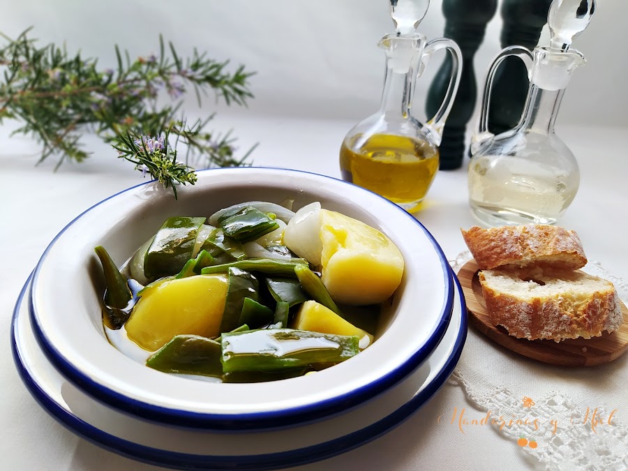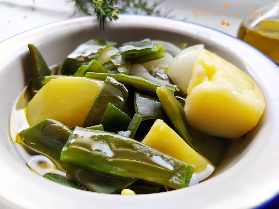 No hay nada mejor que la delicadeza de unas judías verdes o bajocas (como las llamamos aquí) en su punto de cocción, o sea, ni duras ni blandas, junto a la patata deshecha o picada y la melosidad de la cebolla cocida, todo regado con un buen chorrito de aceite de oliva virgen, para terminar el día.....y que el estómago descanse.