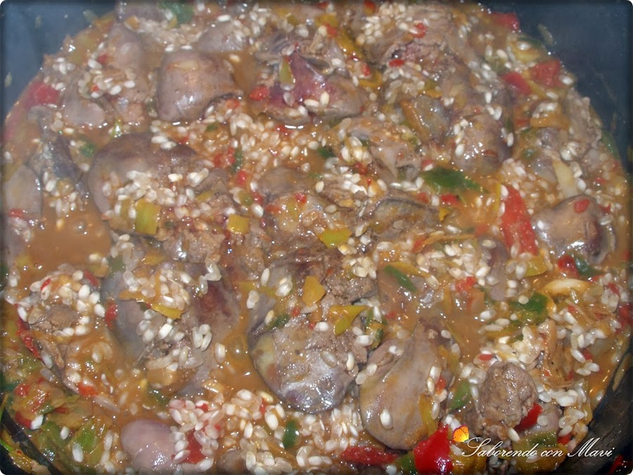 Limpiamos bien los higadillos quitándoles todas las telillas y cosas feas y sal-pimentamos. En una olla ancha ponemos un chorretón de aove y pasamos un poco los higadillos, reservamos.