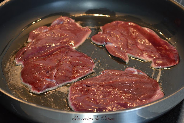 Ponemos el hígado en la sartén y rehogamos suavemente durante un par de minutos.
