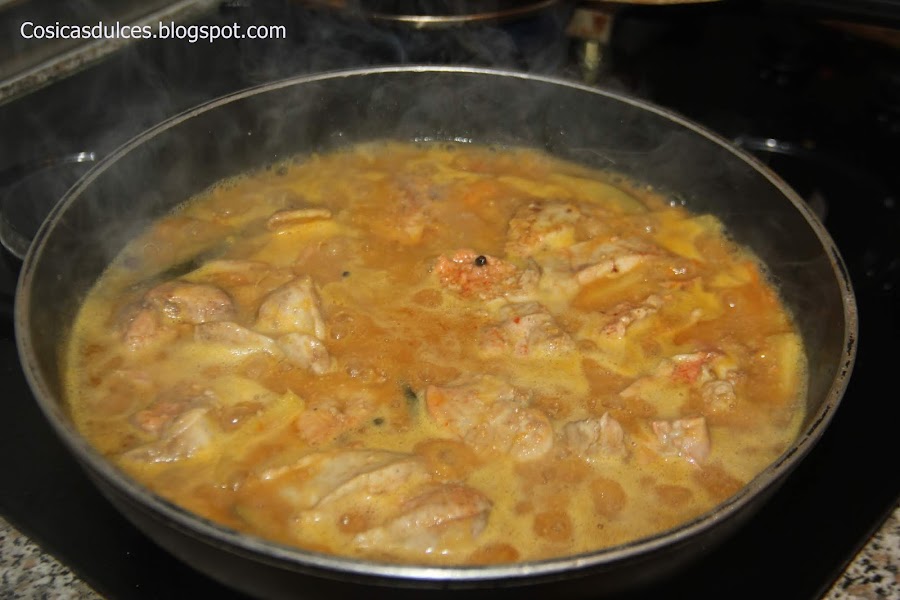 En otra sartén caramelizamos el azúcar. cuando este al punto de caramelo agregamos el vinagre y dejamos un minuto hasta que todo se mezcle bien. Añadimos esta mezcla a la sartén del escabeche.