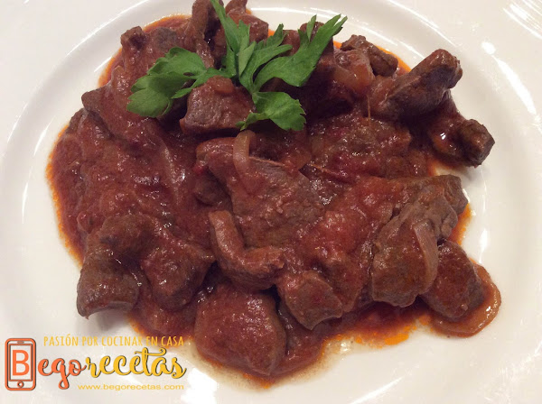 Hígado encebollado con tomate