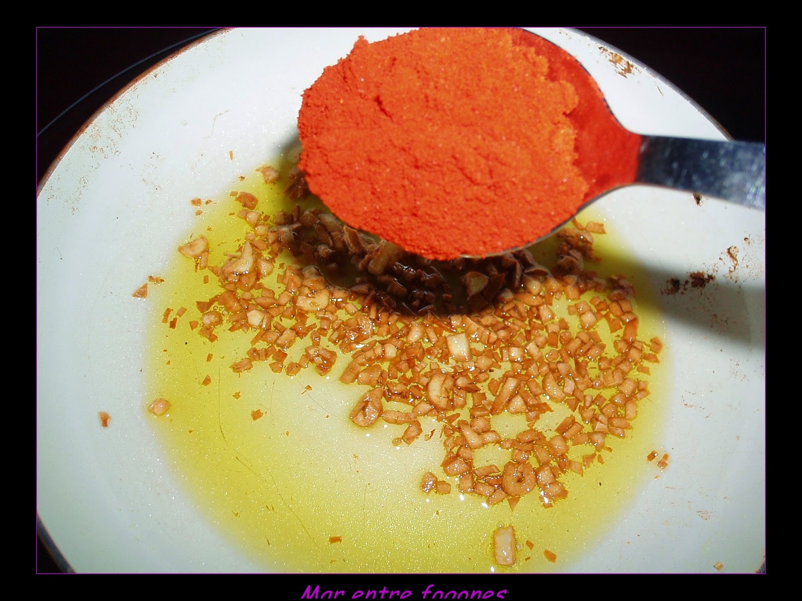 Cuando está marrrón añadimos el pimentón y revolvemos.
