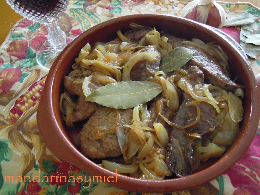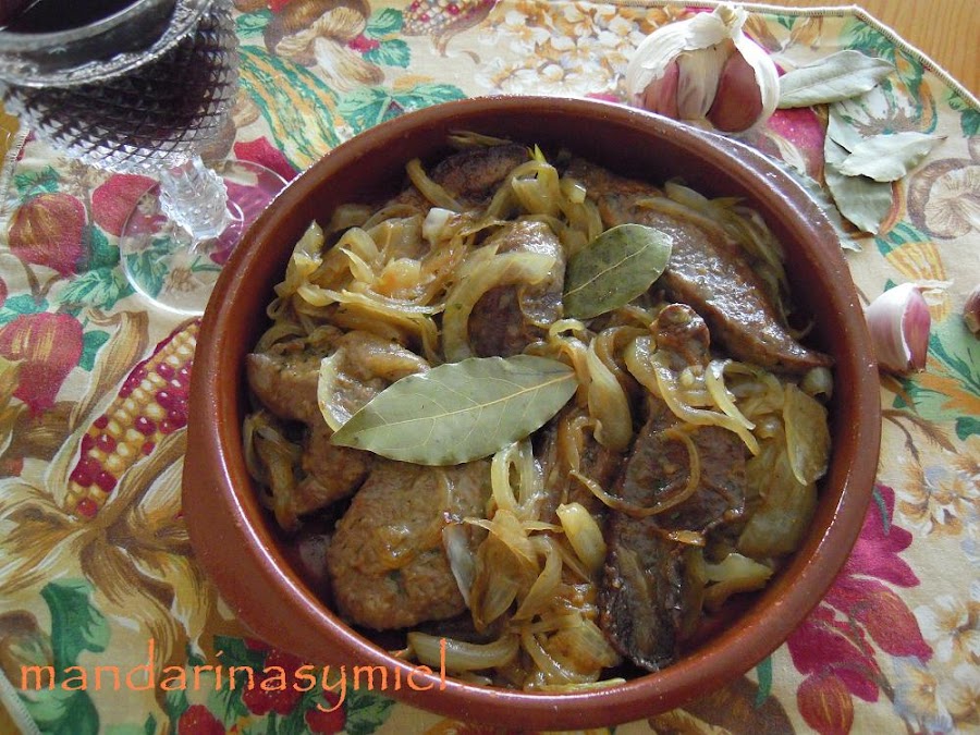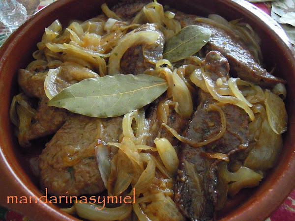 El hígado encebollado es una receta muy tradicional en toda España, es un clásico en la mayoría de las casas. Siempre me ha gustado mucho, mi madre nos lo hacía de vez en cuando y a mi me encantaba, yo he seguido con la tradición en mi casa pero hay distintas opiniones, mientras que a mi marido y a mi hijo les encanta, a mi hija ni verlo....no lo ha probado nunca pero es que no lo quiere ni probar!!