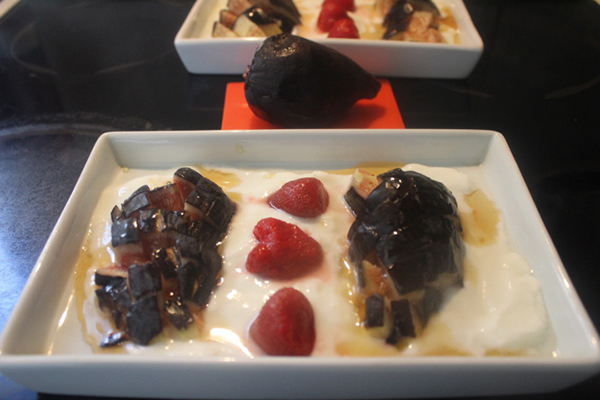 Decoramos colocando las fresas entre las mitades de higo como podéis observar en la foto.