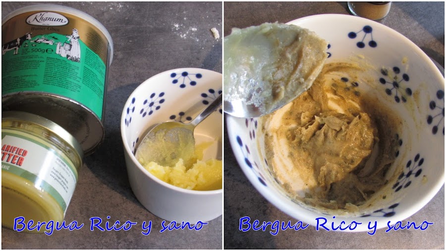 Como os contaba, fundí mantequilla clarificada (ghee indio) con especias sobre una de las ruedas: