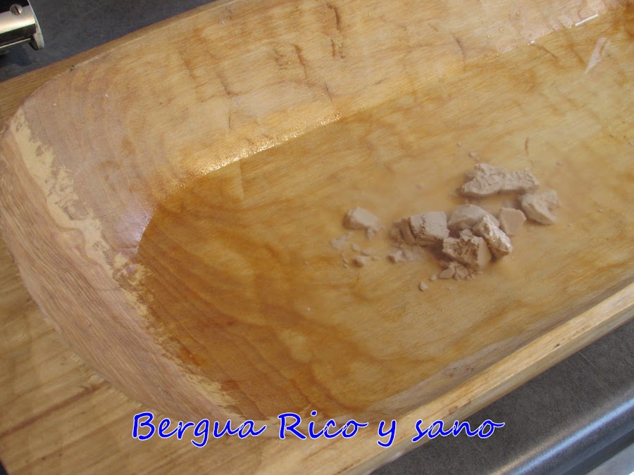1. Desmigamos y deshacemos la levadura en el agua; tibia, no caliente, o mataremos las propiedades de la levadura.