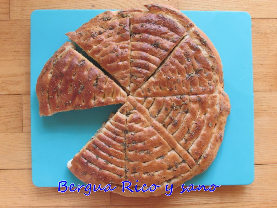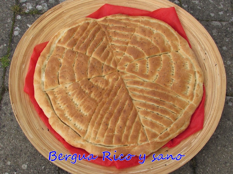 Hay variantes de este pan sin nada, otras con cilantro, comino y cardamomo, otras con jengibre caramelizado y a veces hasta pasas... Yo hoy traigo la básica y más común, pero hice una mezcla de mantequilla clarificada con fenugreco, cilantro y comino y la fundí sobre uno de los panes; buenísimo. Con estas cantidades hice dos buenas ruedas.