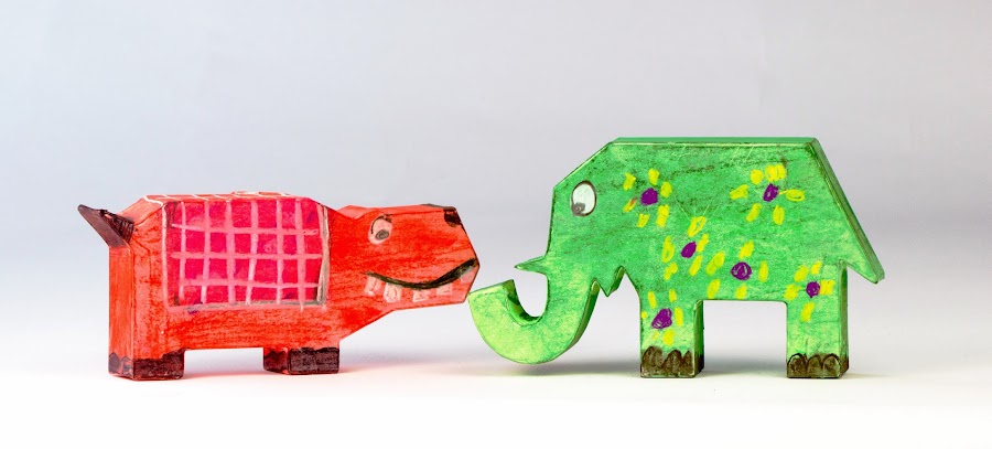 Quería darles un toque de alegría y optimismo y creo que lo he conseguido. El hipopótamo y el elefante descansan sobre un mueble del salón, y arrancan la sonrisa de todo el que entra por la puerta.